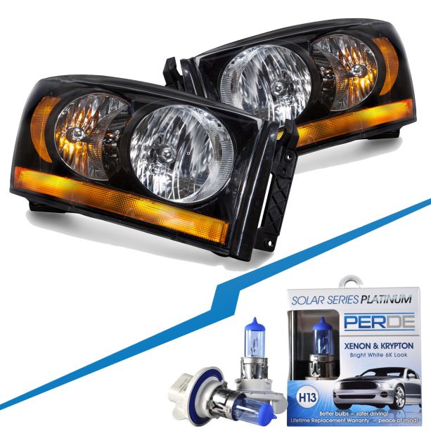 Upgrade the look and performance of your 2006 Dodge Ram Pickup 1500/2500/3500 with this Black Halogen Headlights Set w/Xenons from Headlights Depot. These aftermarket headlights are designed to fit perfectly on your vehicle, providing a sleek and modern look. The black housing and xenon bulbs give your Ram a stylish and aggressive appearance, while the halogen bulbs provide bright and clear illumination for improved visibility and driving safety. This set comes with a set of PERDE bulbs already installed, making installation quick and easy. These headlights are compatible with 2006 Dodge Ram 1500, 2500, and 3500 models. Upgrade your Ram today with these high-quality headlights from Headlights Depot.