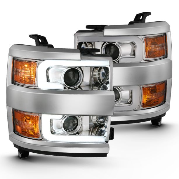 Upgrade your truck with this Halogen Plank Projector Headlight Set featuring a sleek Chrome Housing and Clear Lens. This set includes Chrome Trim and is designed to fit 2015-2019 Chevy Silverado 2500HD and 3500HD models; however, it is not compatible with models that have the factory LED Headlight System.