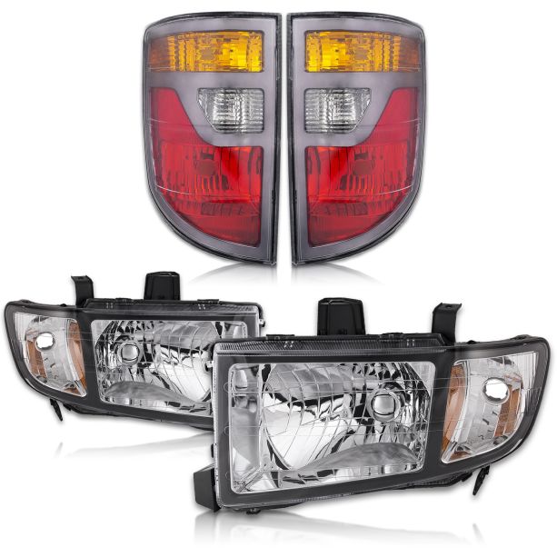 Upgrade the headlights and tail lights on your 2006-2008 Honda Ridgeline with this Headlight and Tail Light Set from Headlights Depot. This set includes both the left driver and right passenger side assemblies, providing a complete and easy upgrade solution. The headlights feature a clear lens and chrome housing, providing a sleek and modern look for your Ridgeline. The halogen bulbs provide bright and reliable illumination, ensuring improved visibility and driving safety. The tail lights are also included in this set, providing a complete upgrade solution for your vehicle. Please note that bulbs are not included with this set. Upgrade your Honda Ridgeline today with this Headlight and Tail Light Set from Headlights Depot.